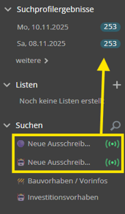 - werden täglich automatisch ausgeführt und geben die tagesaktuellen Treffer unter "Suchprofilergebnisse" aus