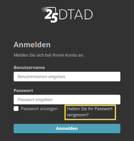Wenn Sie sich nicht mehr einloggen können, weil Ihr Passwort als falsch markiert wird oder Sie es vergessen haben, dann können Sie Ihr Passwort jederzeit zurücksetzen: